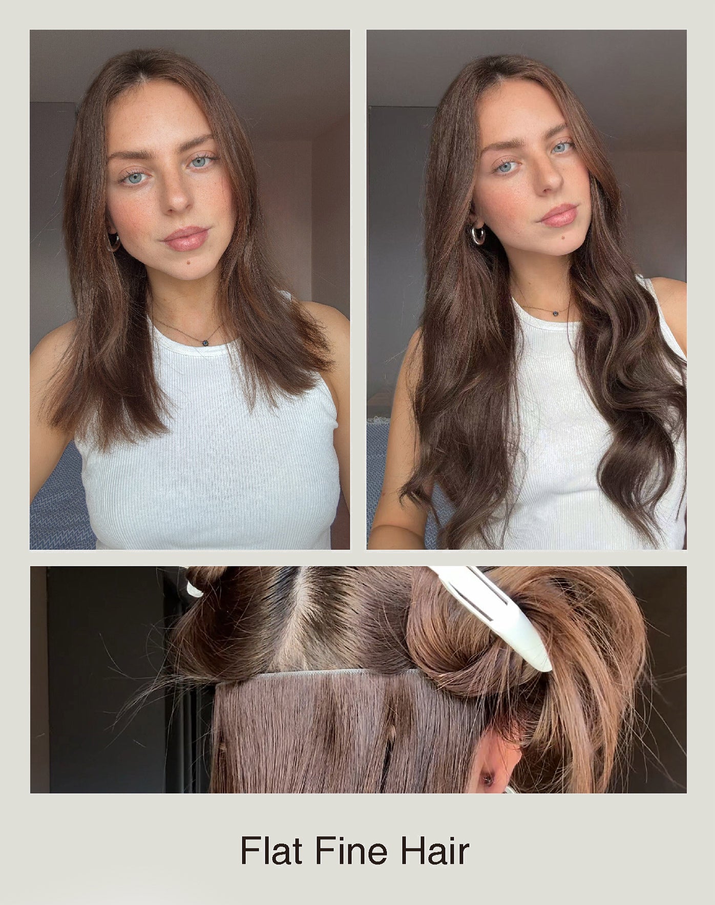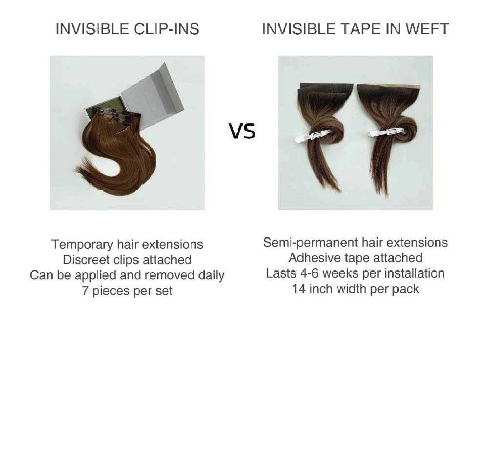 Unlike traditional clip-ins, our Invisible Clip-Ins feature a root-matching band with no shine band, so they blend seamlessly near your parting—even on thin or fine hair. They're ultra-light, bump-free, and truly invisible.